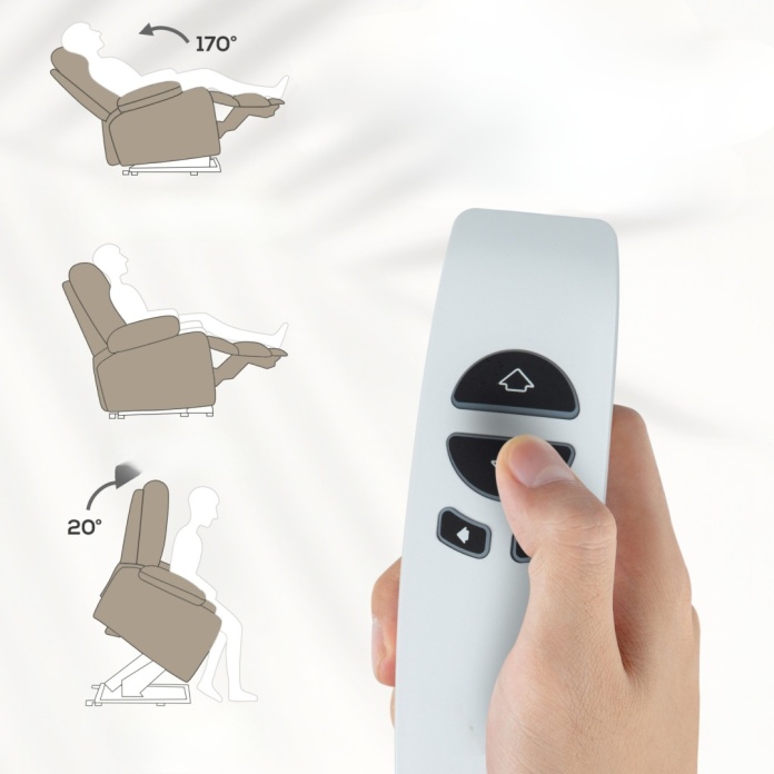 - Podwójny silnik dla pełnej kontroli i FUNKCJI PODNOSZENIA: Dwa niezależne silniki umożliwiają łatwą, niezależną regulację podnóżka i oparcia (odchylenie do 170°). Z łatwością znajdziesz swoją ulubioną pozycję – od pozycji leżącej po wspomaganą pozycję stojącą, dzięki funkcji podnoszenia siedziska. Wszystko sterowane wygodnym pilotem!