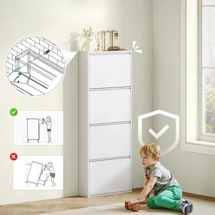 Wykonana w całości z metalu, szafka jest odporna na odkształcenia i zapewnia stabilność na lata. Gładka powierzchnia ułatwia szybkie czyszczenie, a wentylowane tylne ścianki dbają o świeżość przechowywanych butów.